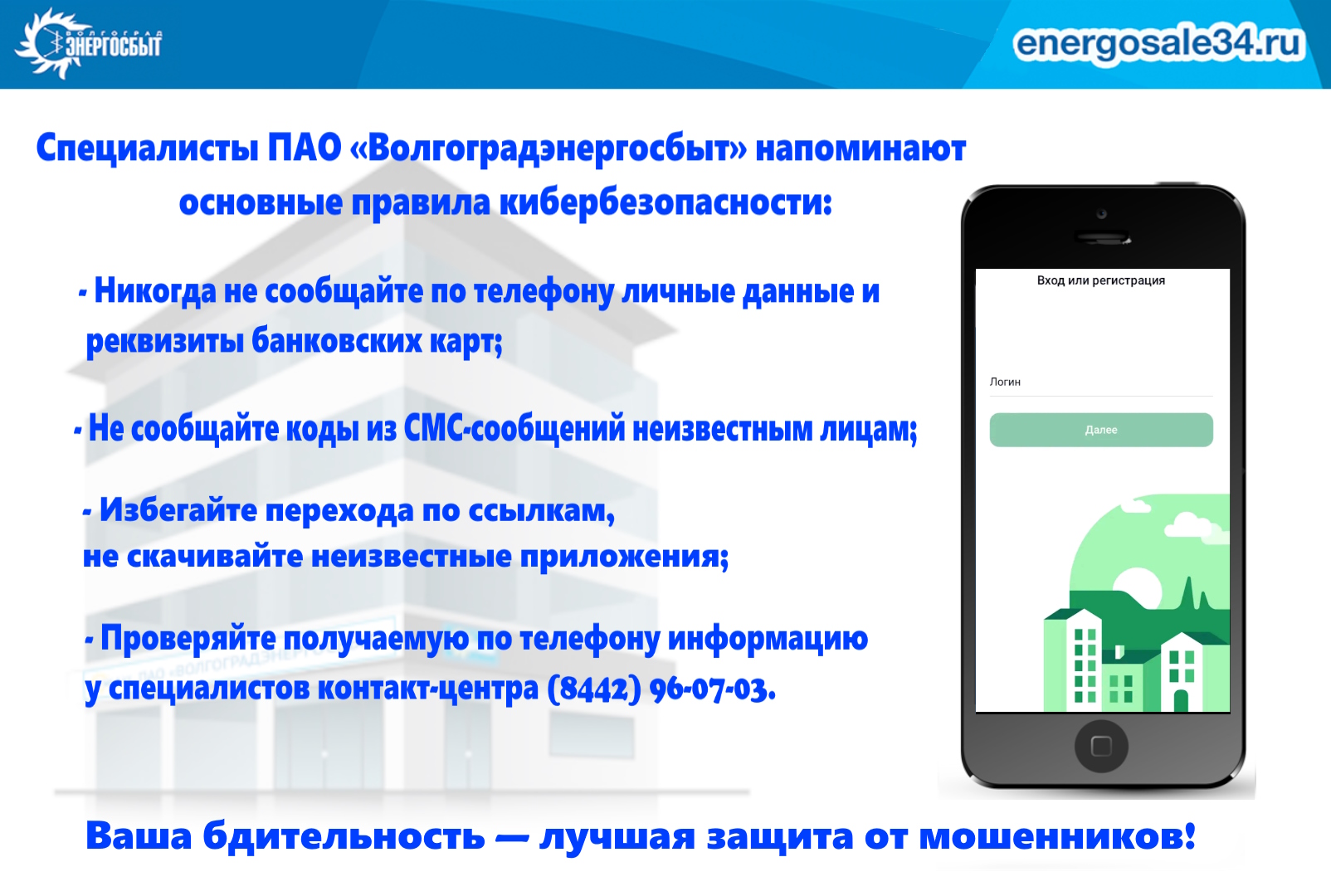 Специалисты ПАО «Волгоградэнергосбыт» напоминают  волгоградцам об информационной безопасности