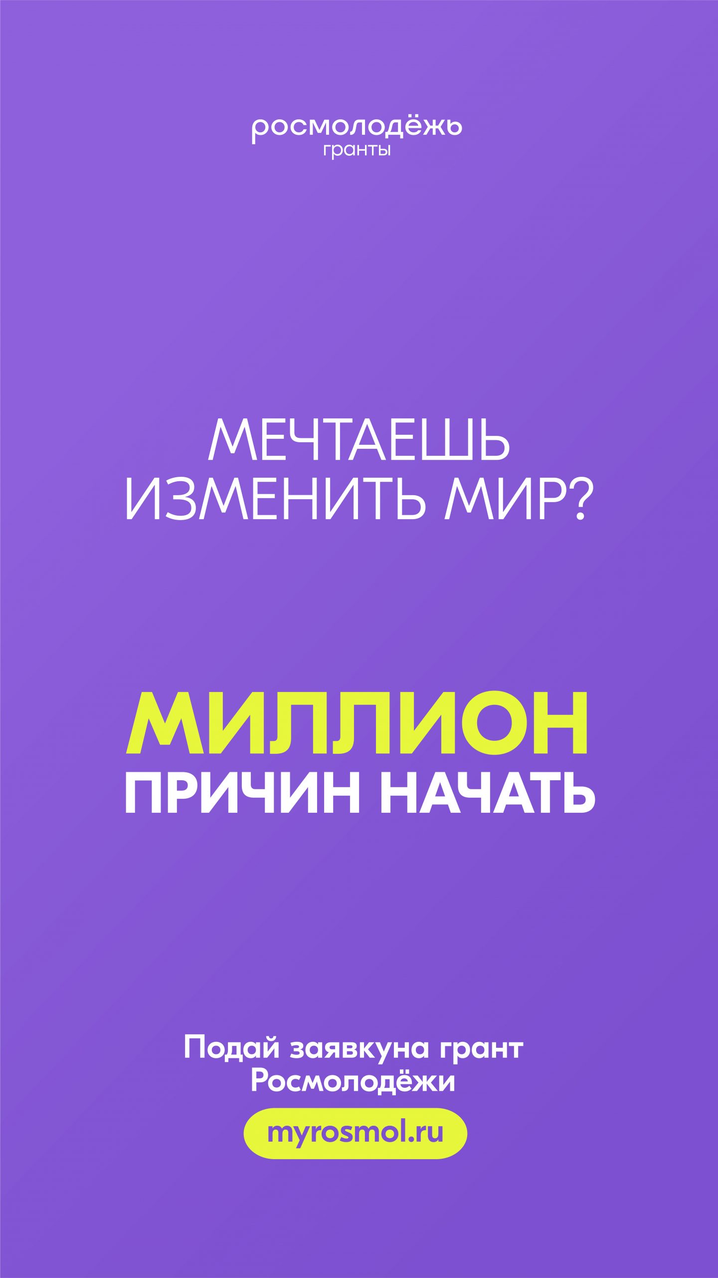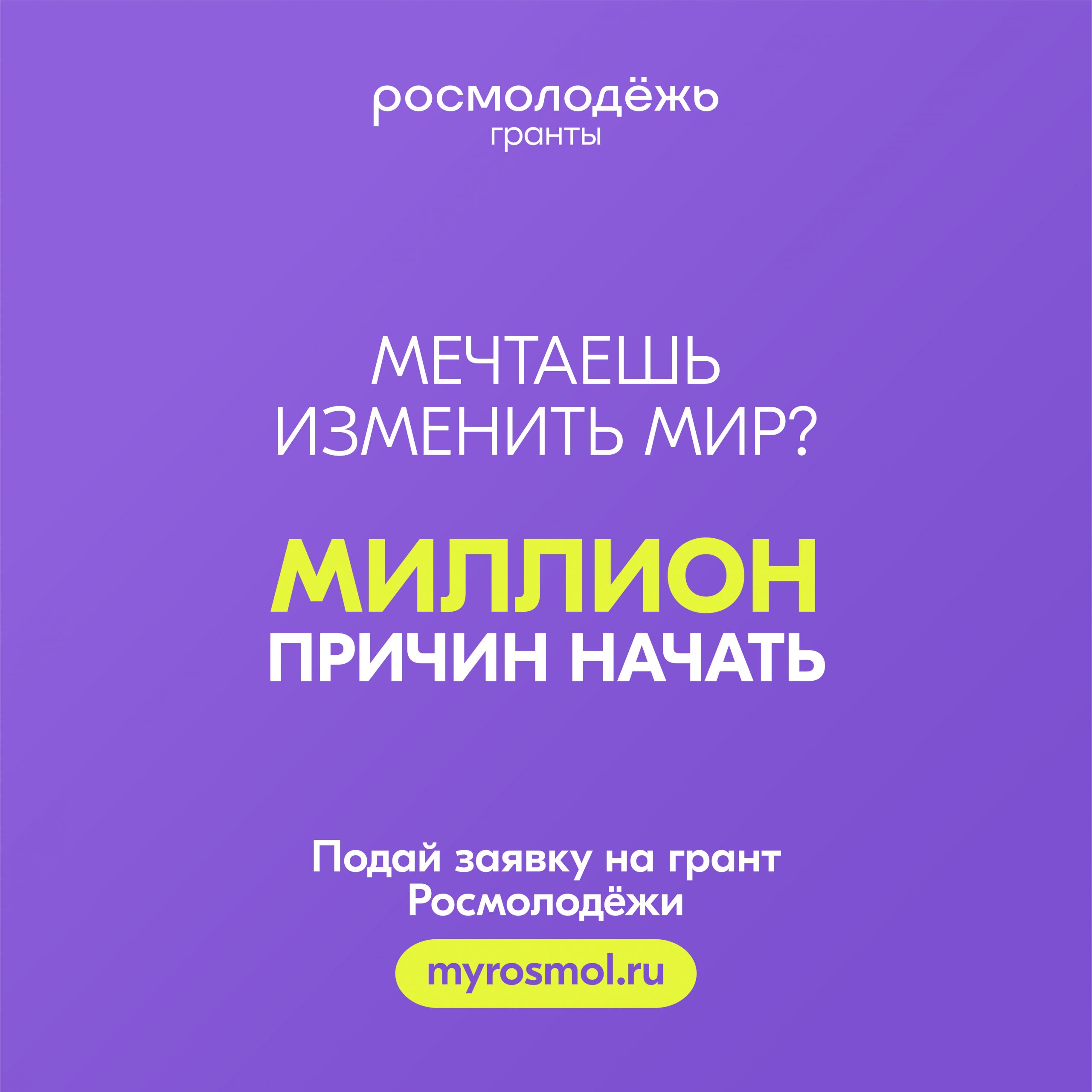 1 августа 2025 года Федеральное агентство по делам молодежи (Росмолодёжь) объявило о начале приёма заявок на Всероссийский конкурс молодежных проектов «Росмолодёжь.Гранты 2 сезон». Конкурс проводится в соответствии с постановлением Правительства Российской Федерации от 15 сентября 2020 года № 1436 с изменениями и проходит в рамках федерального проекта «Россия — страна возможностей» национального проекта «Молодёжь и дети».